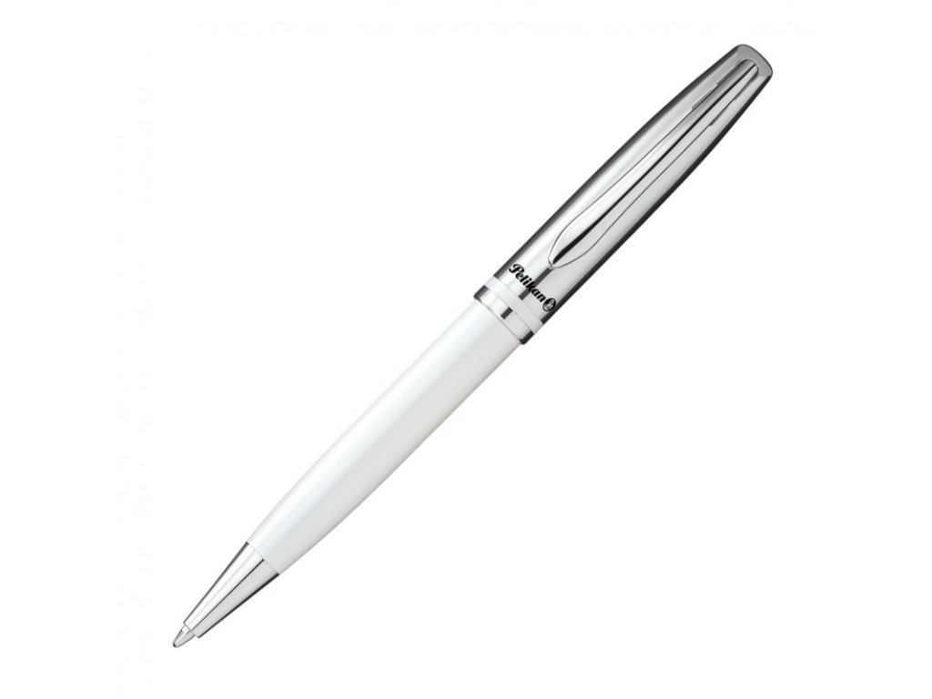 - Classic, kovové s pochromovanou vrchní částí a bílou spodní částí těla, s kovovým klipem, leskle lakované, náplň Pelikan 337 M modrá