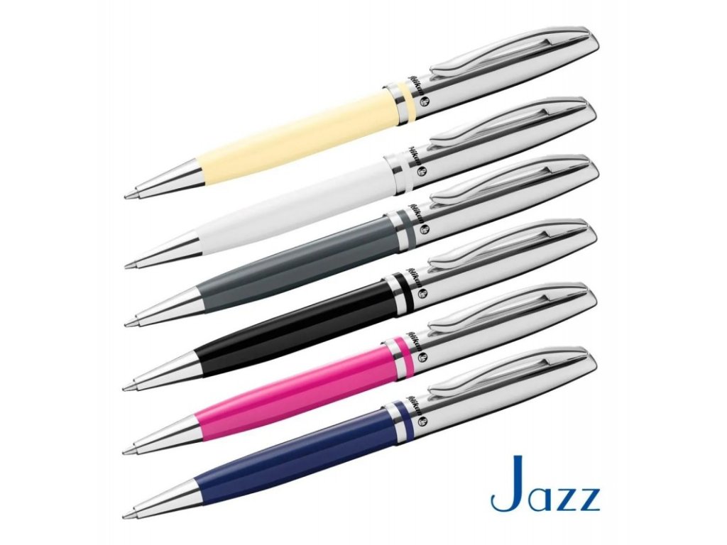 Pelikan Jazz, Kuličkové pero K35, kovový stříbrný klip, bílé tělo, modře píšící