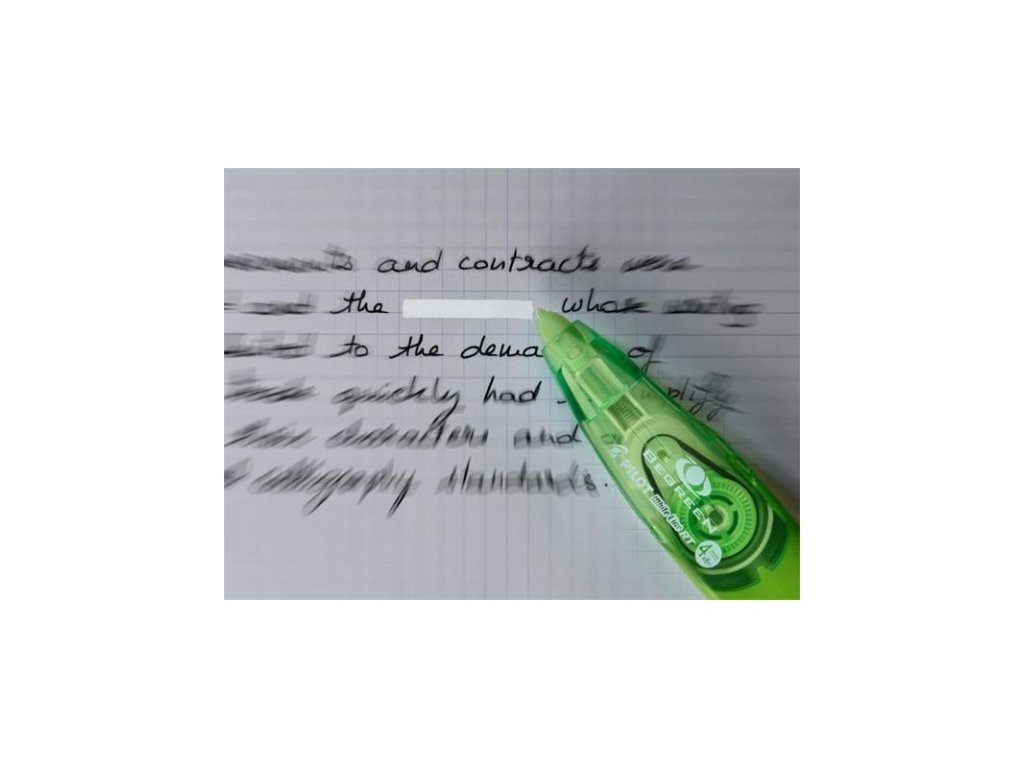 - Unikátní stiskací mechanika umožňuje ukrýt korekční pásku do těla strojku,zabrání se tak jejímu poškození či přetržení když strojek není používán.