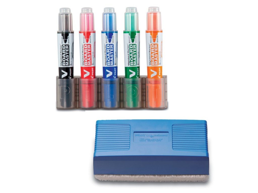 Pilot Whiteboard Kit, sada 5 popisovačů, držáku a houby na tabule