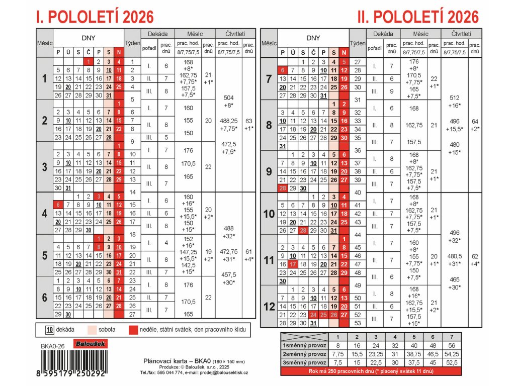 PLÁNOVACÍ KARTA 2026 BKA0 - LÍSTKOVÝ KALENDÁŘ