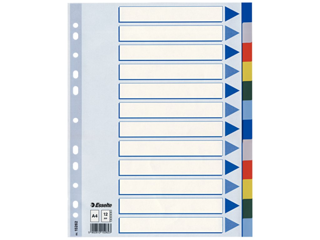 Plastové barevné rozlišovače A4 Esselte, 12 barevných listů