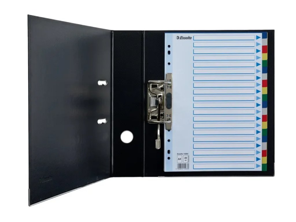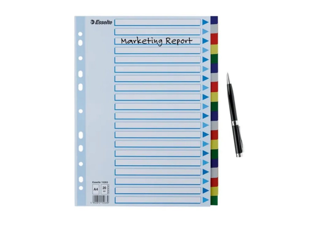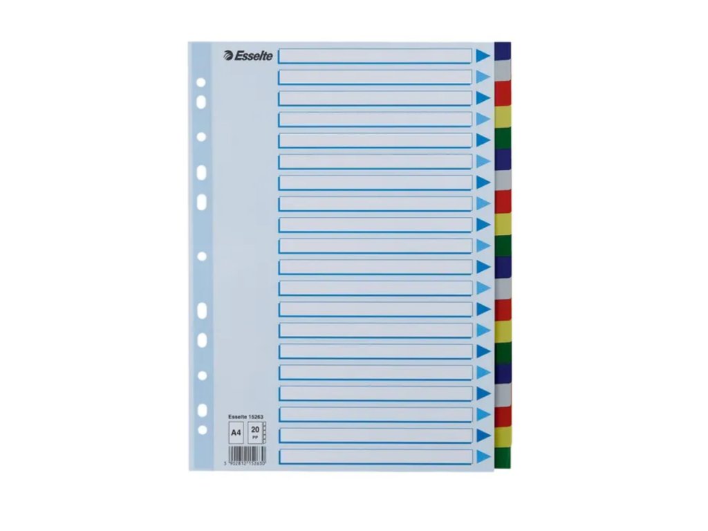 Plastové barevné rozlišovače A4 Esselte, 20 barevných listů