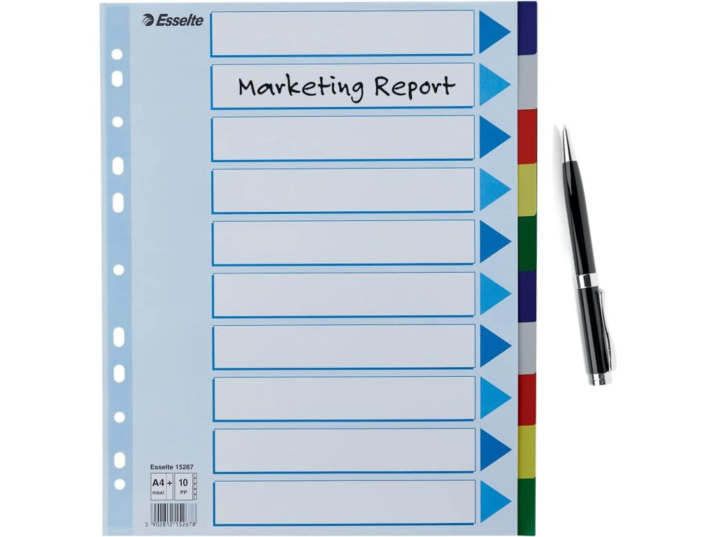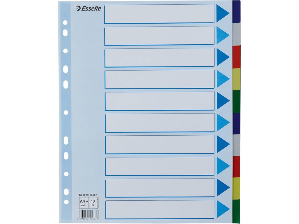 Plastové barevné rozlišovače Esselte, A4 Maxi, 10 barevných listů