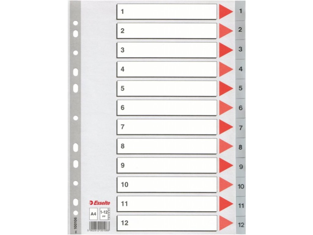 Plastové rejstříky A4 Esselte, 1- 12 dělících listů