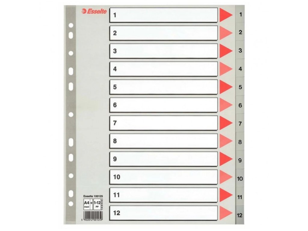 Plastové rejstříky A4 Esselte MAXI, 1 - 12 dělících listů