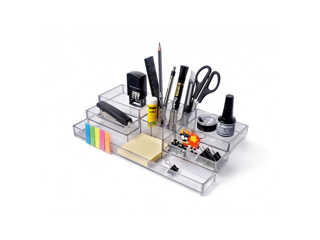 Plastový stojánek na tužky čirý, 11 přihrádek