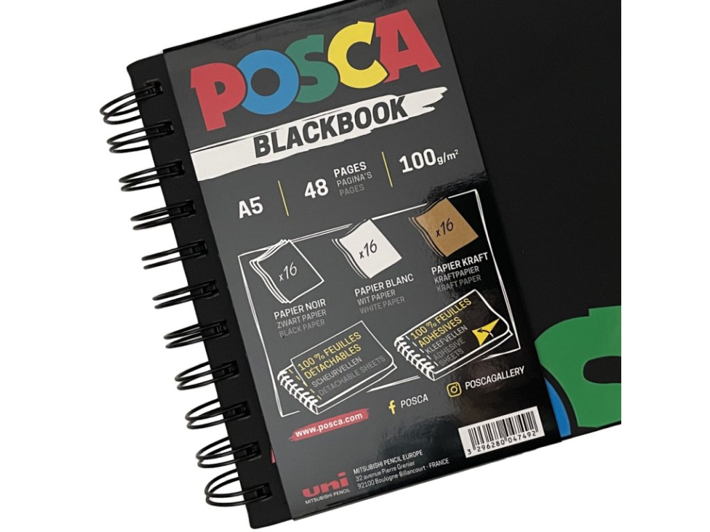 Posca Blackbook A5 Sketchbook 48 stran, mix 3 barev papíru, skicák