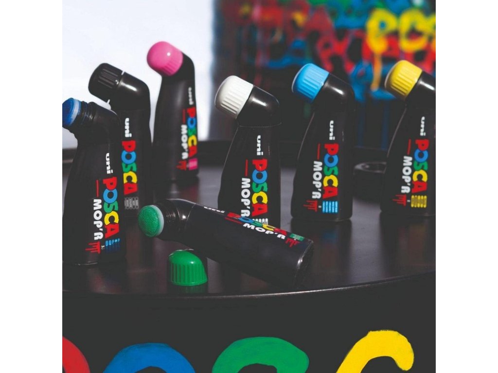 Jedinečný. XXL kulatý a pěnový hrot je mimořádně přesný. Zábavný. Můžete ho držet jako běžný popisovač nebo vzhůru nohama. Ideální pro kontrolovaný „drip“ efekt. Městský. Bubble lettering, kontrolované stékání, stříkance, sprejové efekty. Jasný odkaz na historii značky POSCA – street art. Návykový. Velké plochy, nekonečné linie, instinktivní použití, nekonečná zábava.