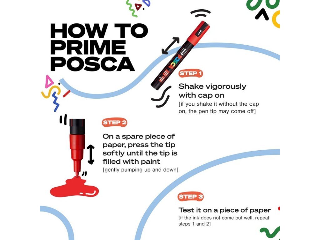 Jedinečný. XXL kulatý a pěnový hrot je mimořádně přesný. Zábavný. Můžete ho držet jako běžný popisovač nebo vzhůru nohama. Ideální pro kontrolovaný „drip“ efekt. Městský. Bubble lettering, kontrolované stékání, stříkance, sprejové efekty. Jasný odkaz na historii značky POSCA – street art. Návykový. Velké plochy, nekonečné linie, instinktivní použití, nekonečná zábava.
