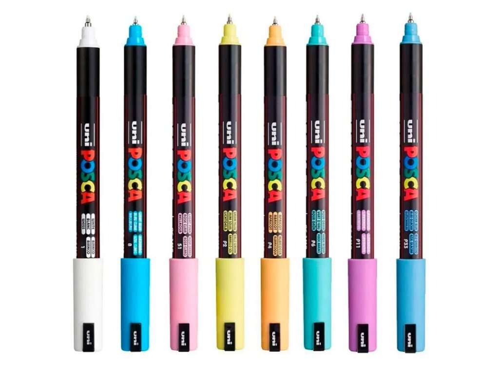 Posca PC-1MR sada popisovačů 8 ks, pastelové barvy - POSCA sada Akrylových popisovačů tenký hrot 0,7 mm, set 8 ks, UNI PC-1MR pastelové barvy