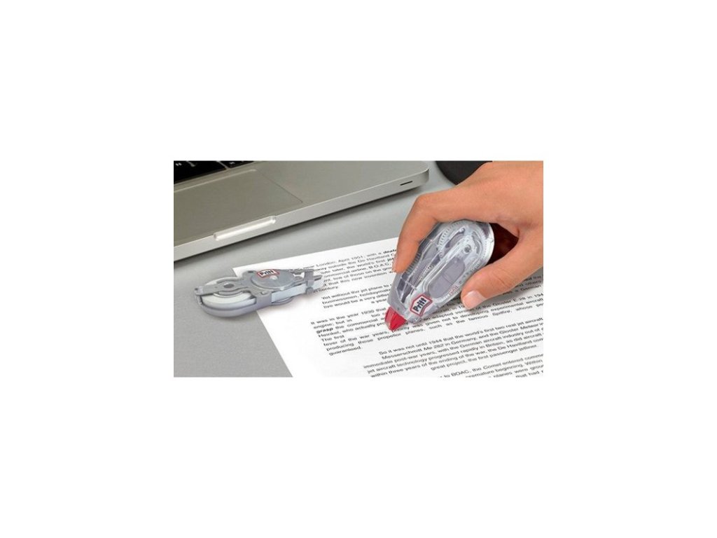 - Flexibilný aplikátor pro hladké a čisté korekce. Dva způsoby aplikace: pull pro opravu celé věty, push pro opravu jednoho písmena. Vyměnitelné náplně: 12m opravná páska k okamžitému přepisování, dostupná v dvou šířkách: 4,2 mm pro text psaný na počítači a 6,0 mm pro ručně psaný text.