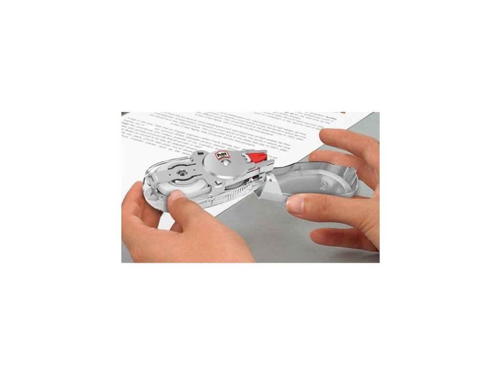 - Flexibilný aplikátor pro hladké a čisté korekce. Dva způsoby aplikace: pull pro opravu celé věty, push pro opravu jednoho písmena. Vyměnitelné náplně: 12m opravná páska k okamžitému přepisování, dostupná v dvou šířkách: 4,2 mm pro text psaný na počítači a 6,0 mm pro ručně psaný text.