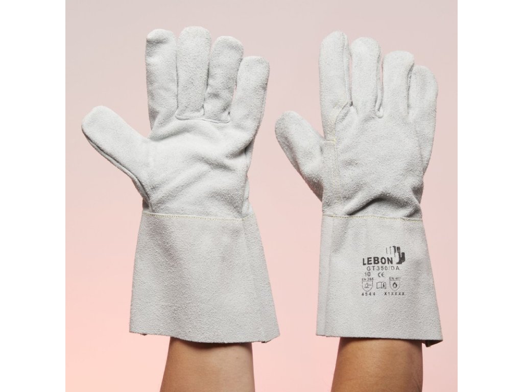 - 5-prstové rukavice z přírodní hovězí štípenky vystlané bezešvými pletenými rukavicemi odolnými proti proříznutí.