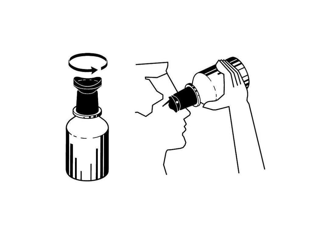 - Vyrábíme ji s ergonomickým víkem, který zapadá do očního důlku. Je vybavena také chráničem proti prachu a na etiketě je uveden podrobný návod k použití.