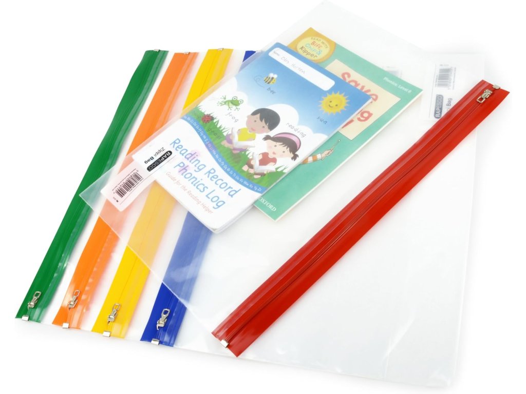 RAPESCO 1503 obálka na zip A4+, transparentní, mix barev, 5 ks