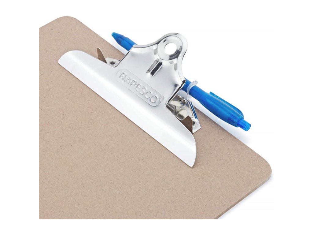 - Tato podložka pojme mnoho listů papíru formátu A4 a má pevnou sponu s praktickým závěsným otvorem.