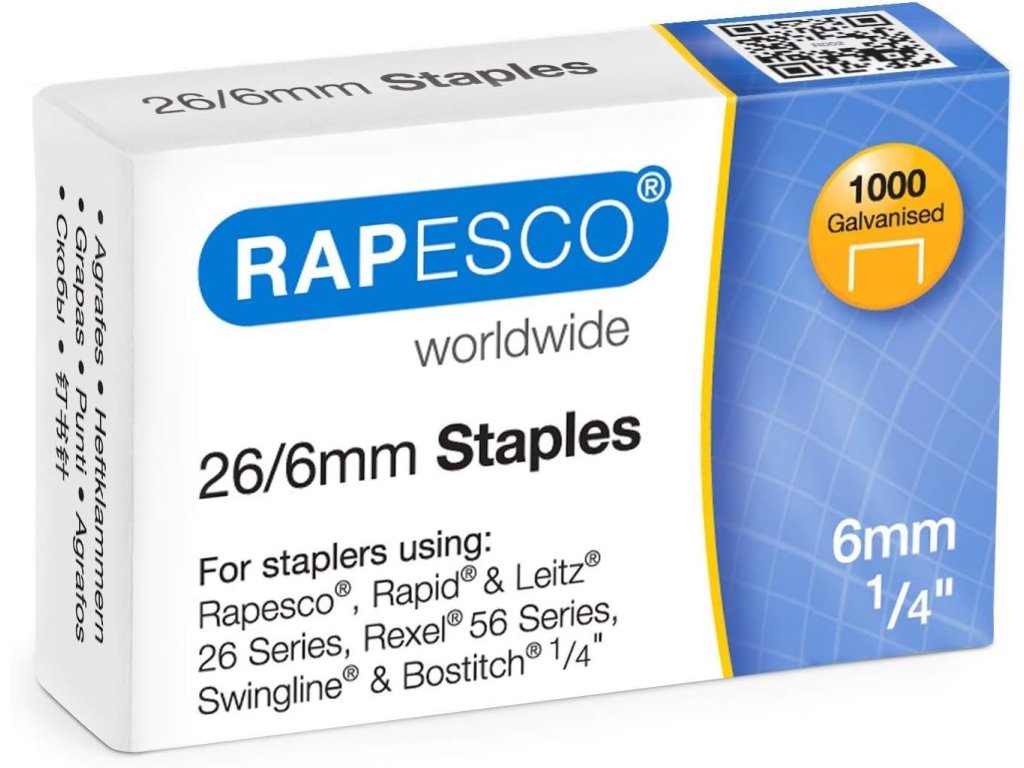 RAPESCO spony do sešívačky 26/6 mm, 1000 ks, pozinkované