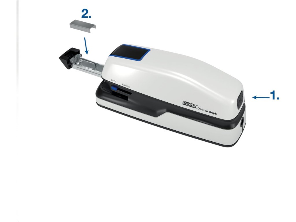 Elektrická sešívačka je určena pro běžné kancelářské sešívání dokumentů bez nutnosti vyvíjet tlak. Umožňuje plně automatické sešívání po vložení papíru i ruční režim stiskem přední části. Konstrukce je vhodná pro stolní použití i mobilní práci.