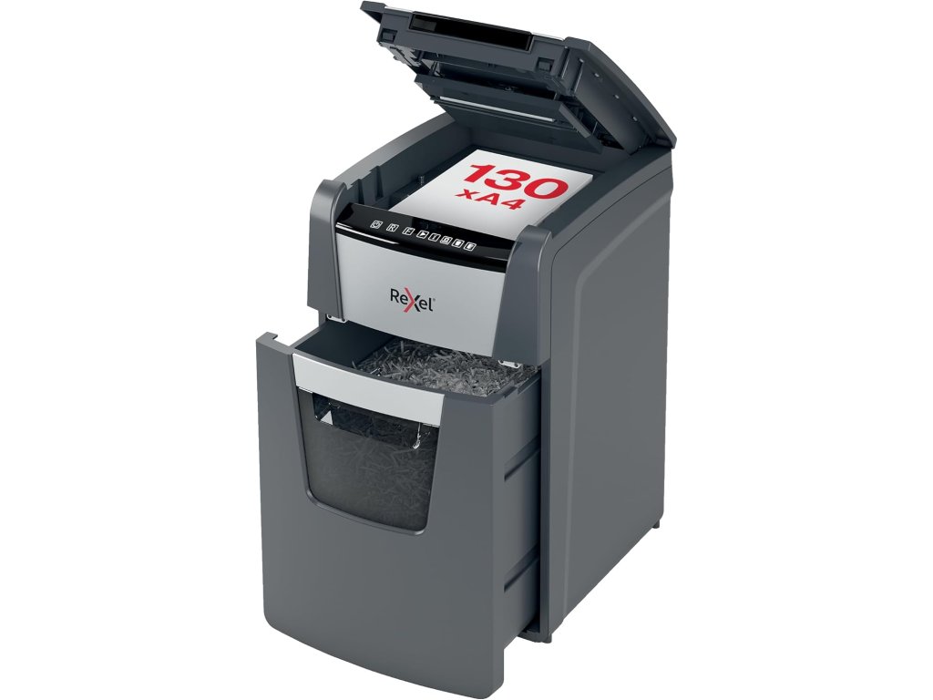 Rexel Optimum AutoFeed+ 130 Pro P4 skartovačka, křížový řez 4 × 28 mm, 130 listů, koš 44 l