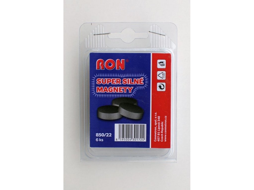 Ron magnety 850, černé průměr 22 mm / 6 ks supersilné