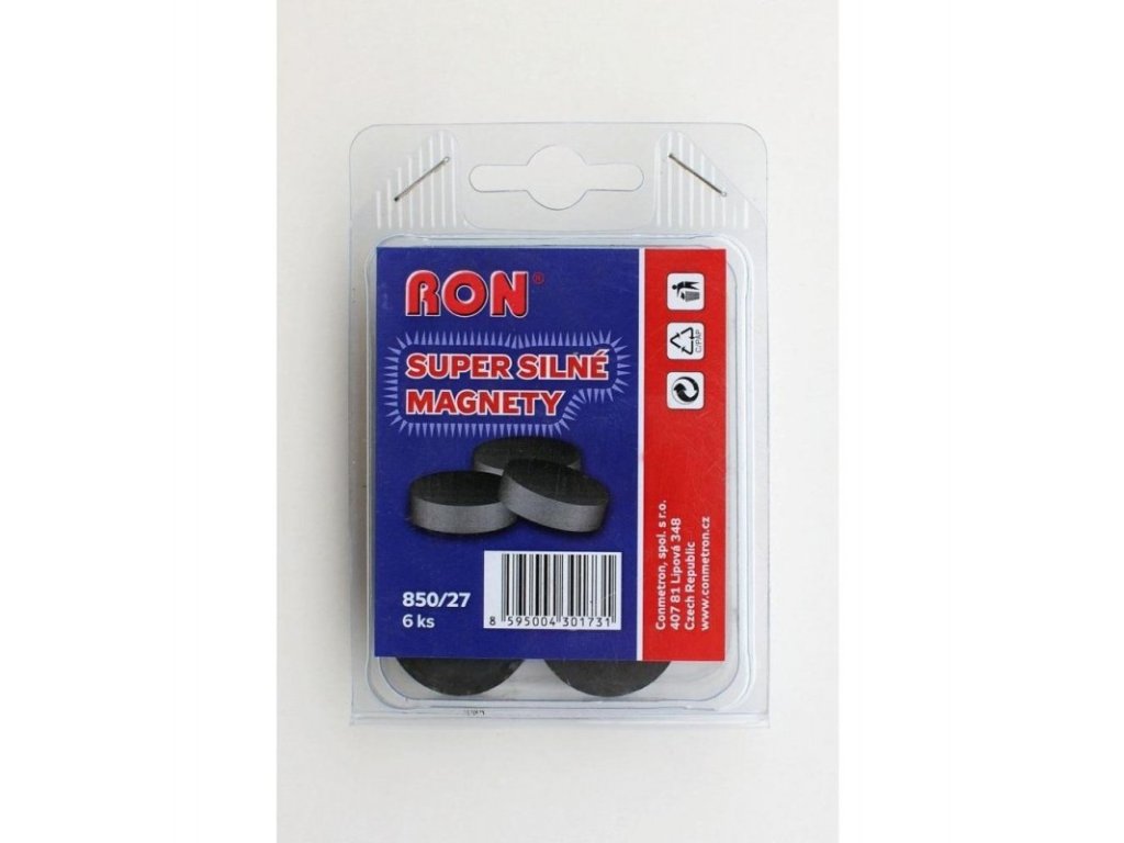 Ron magnety 850, černé průměr 27 mm / 6 ks supersilné