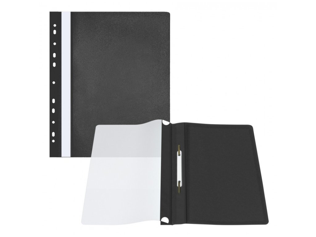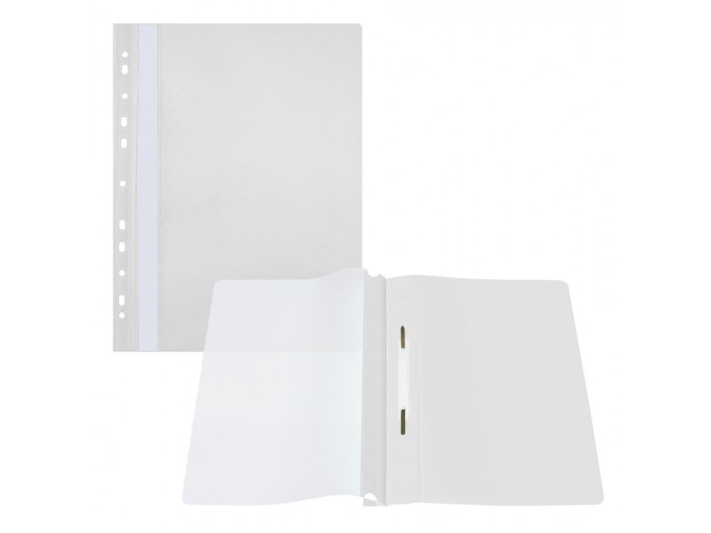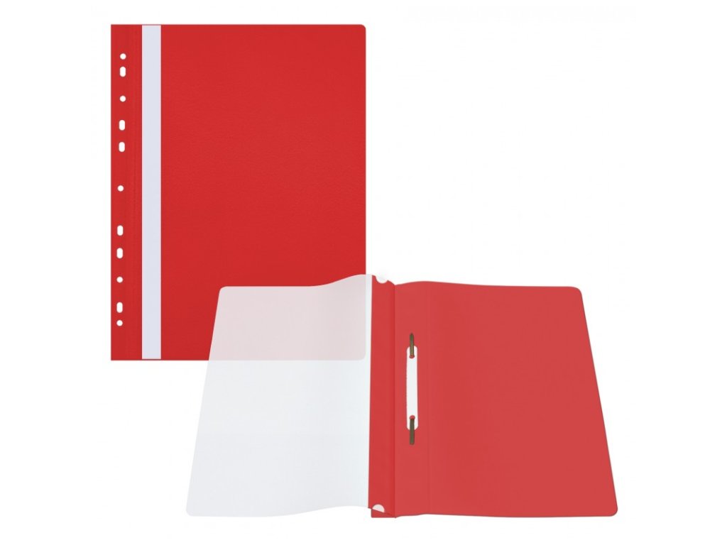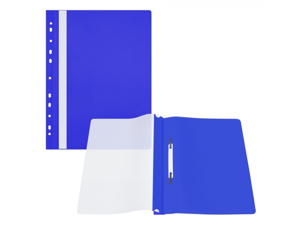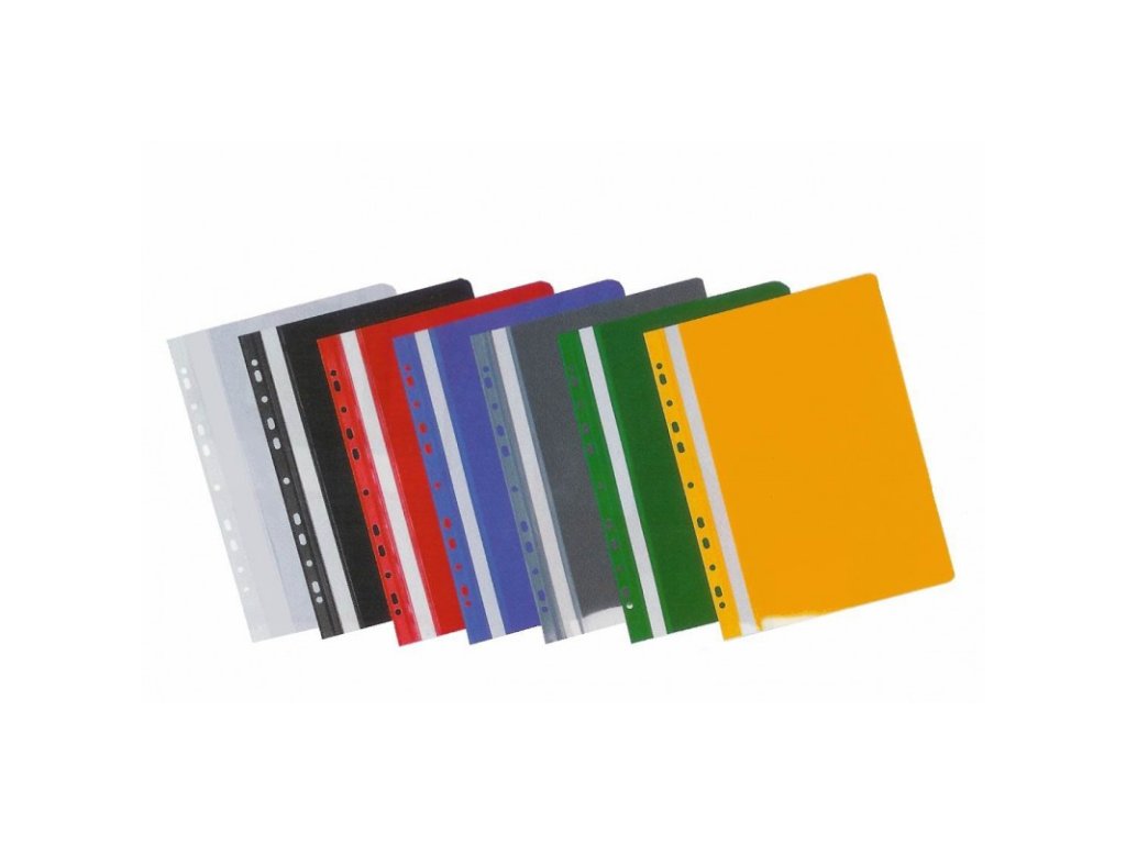 - Plastový závěsný rychlovazač s přední průhlednou stranou, zadní strana barevná, tloušťka přední a zadní strany 100 a 160 mikronů,