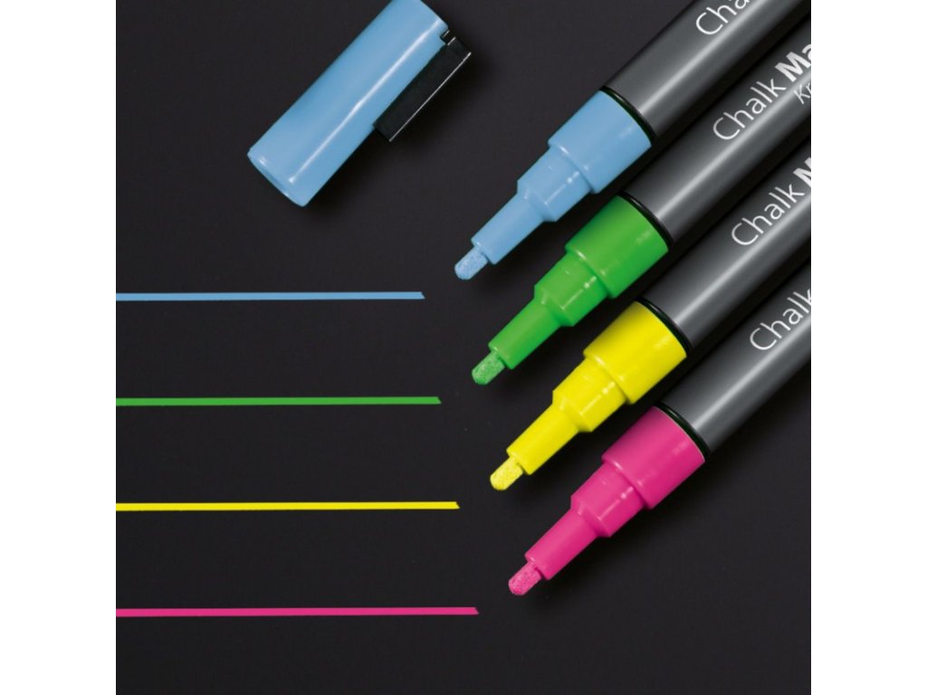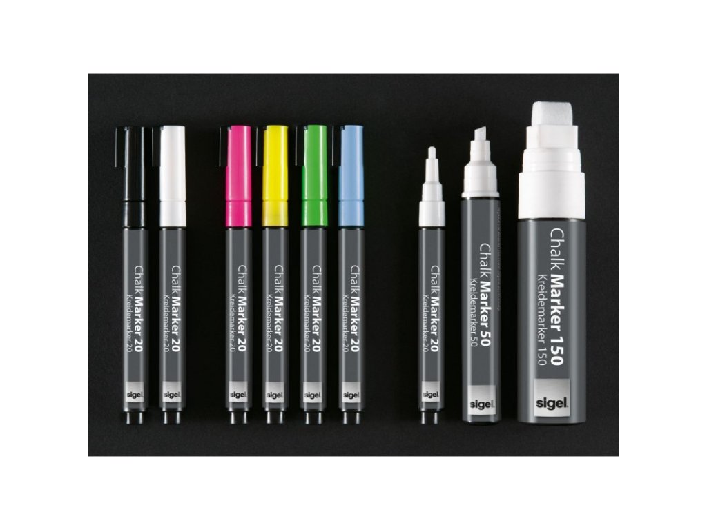 Sada barevných křídových popisovačů Sigel na skleněné tabule, kulatý hrot 1-2 mm