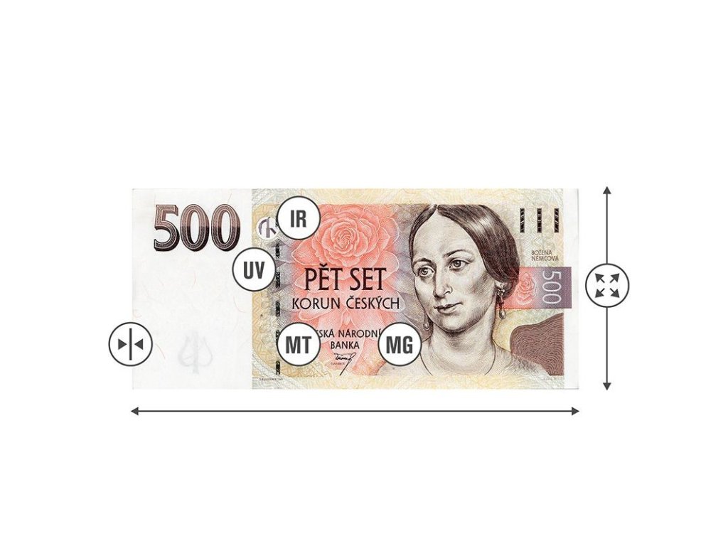 - Možnost 3 bodové kontroly ochranných prvků bankovek