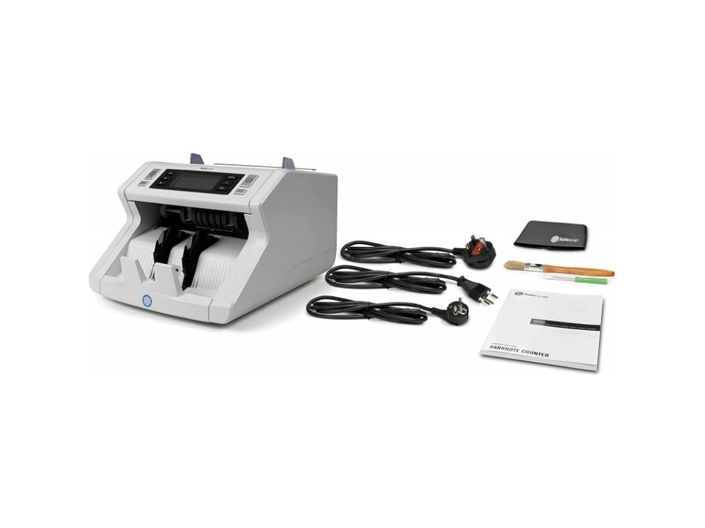 - V balení: Safescan 2250, manuál, čistící a servisní sada, napájecí kabely (EUR/UK/Švýcarsko), kryt proti prachu