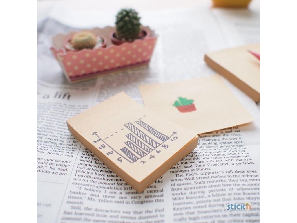 Samolepicí bloček vyrobený z přírodního hnědého papíru pro milovníky přírody. Materiál je ideální nejen pro poznámky, ale i kreativní tvoření. Lístky jdou snadno nalepit a odlepit, přesto skvěle drží. Nezanechávají stopy po lepidle.
