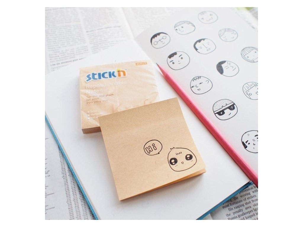 Samolepicí bloček Stick'n Kraft z přírodního papíru, 76x76 mm, obsah 100 lístků