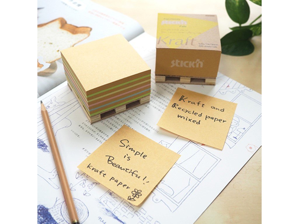 Samolepící špalíček ve tvaru kostky Stick'n by Hopax Kraft Cube na dřevěné paletce, vyrobený z přírodního hnědého papíru pro milovníky přírody. Materiál je vhodný nejen na poznámky, psaní a kreslení, ale i pro kreativní tvoření. Lístky jdou velice snadno nalepit i odlepit a přesto bezpečně drží. Po odlepení nezanechávají na povrchu žádné stopy po lepidle. K dispozici také v mnoha dalších rozměrech, barvách a provedeních.