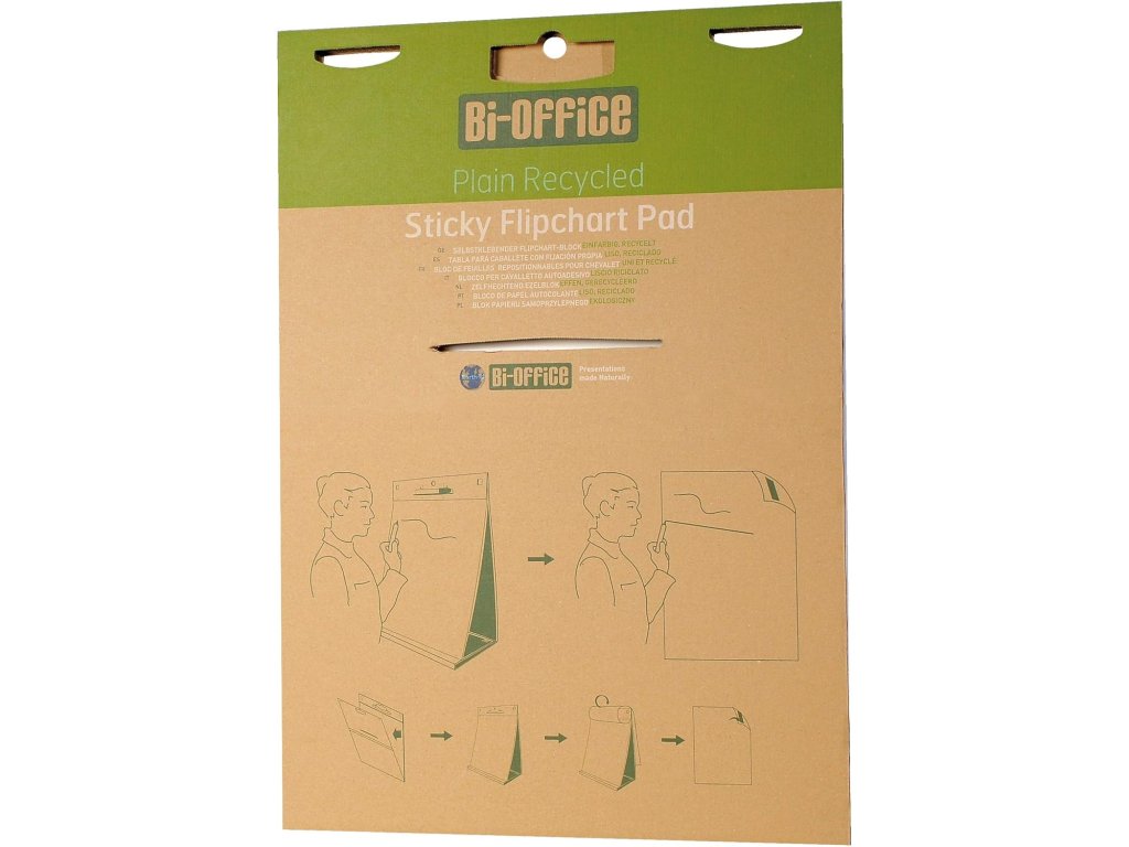 Samolepicí přenosný flipchart Earth-It představuje inovativní a ekologickou alternativu klasického flipchartového bloku. Je vyroben z více než 95 % recyklovaných materiálů a samotné listy jsou ze 100% recyklovaného papíru, takže je ideální volbou pro firmy, školy i organizace s ohledem na udržitelnost.