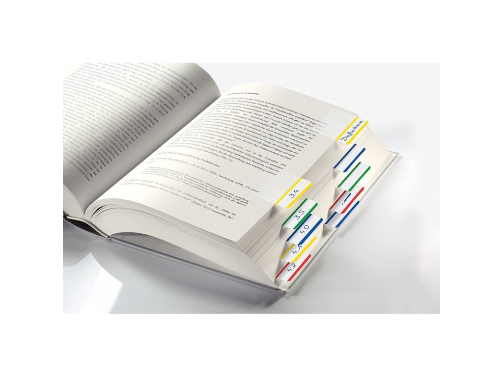 Samolepicí záložky Sigel extra silný plast, 50x38 mm, 4 barvy po 5 útržcích, barevný pruh