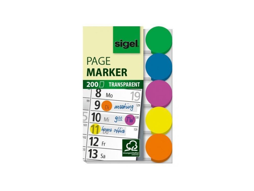 Samolepicí záložky Sigel kolečka, 50x12 mm, 5 barev po 40 útržcích