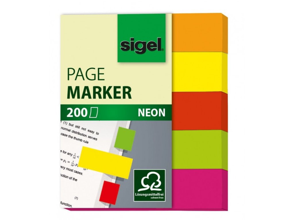 Samolepicí záložky Sigel obdelník, 50x12 mm, 5 barev po 40 útržcích, neon celobarevné