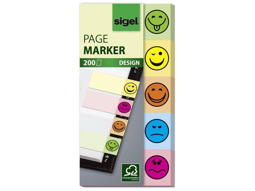 Samolepicí záložky Sigel obdelník, 50x20 mm, 5 barev po 40 útržcích, motiv Smile