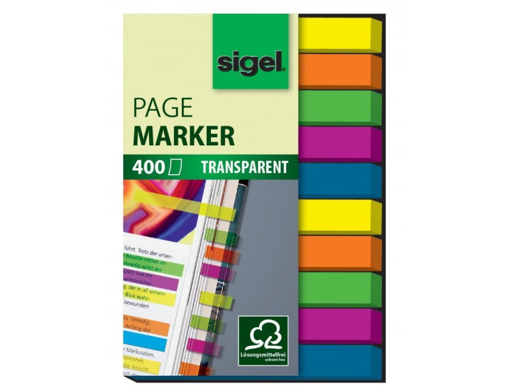 Samolepicí záložky Sigel obdelník, 50x6 mm, 10 barev po 40 útržcích, extra malé proužky