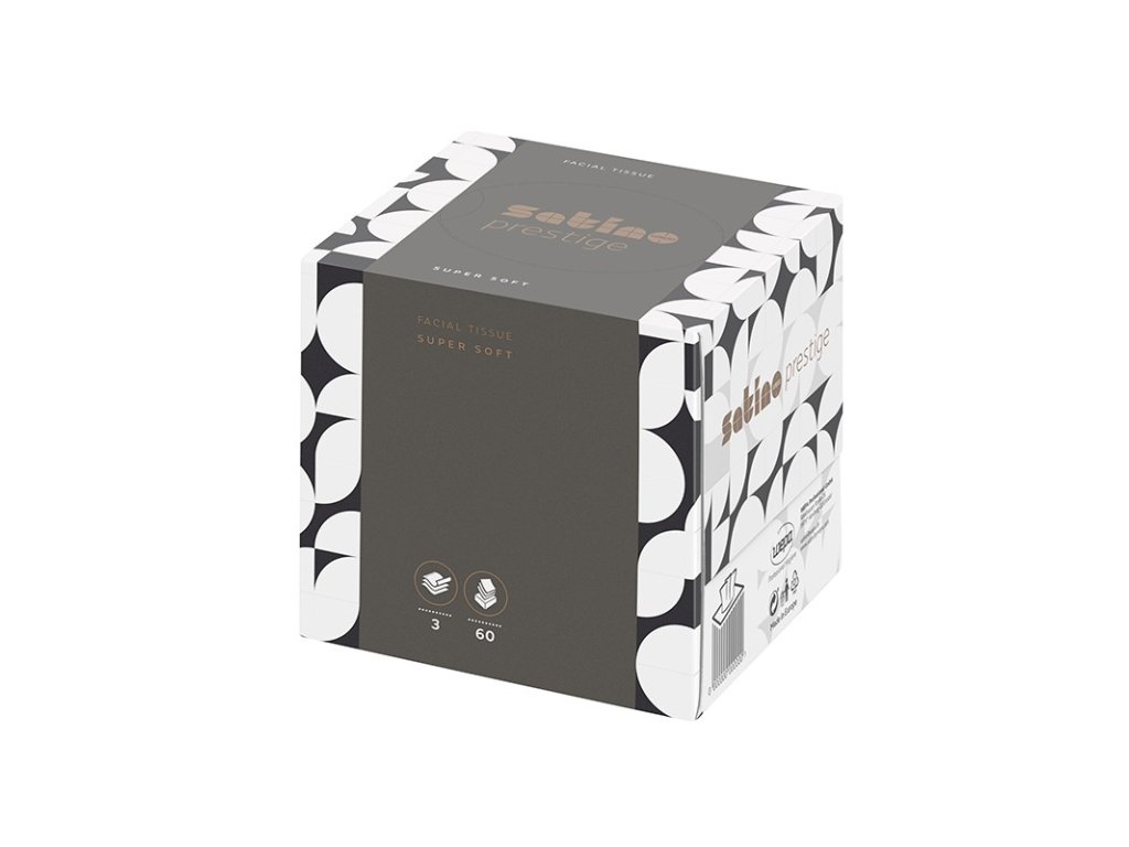 Satino Prestige, vytahovací kapesníčky kosmetické, bílé, 3-vrstvé, 60 ks