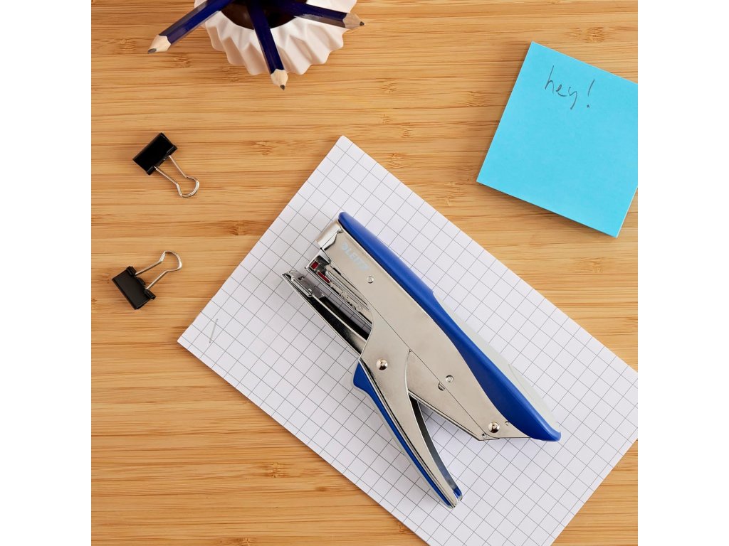 - Celokovové sešívací kleště vhodné pro použití jak v kanceláři, tak i v domácnosti.