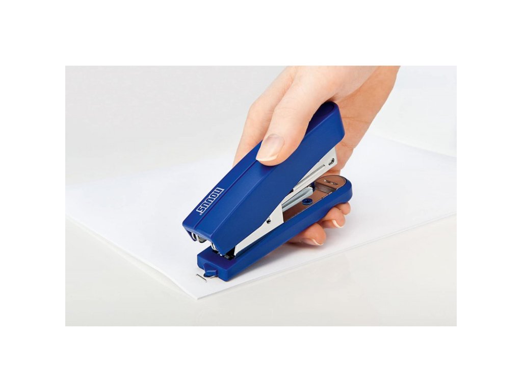 Nejmenší sešívačka na cesty. Celokovová sešívačka s částečným horním plastovým krytem. Integrovaný odstraňovač sponek z kovu. Plnění shora s jednoduchým vedením sponek. Maximální hloubka vkládání papíru 45 mm. Hmotnost: 100 g. Dodání vč. 200 sponek č. 10 SUPER. Prodloužená záruka 10 let.