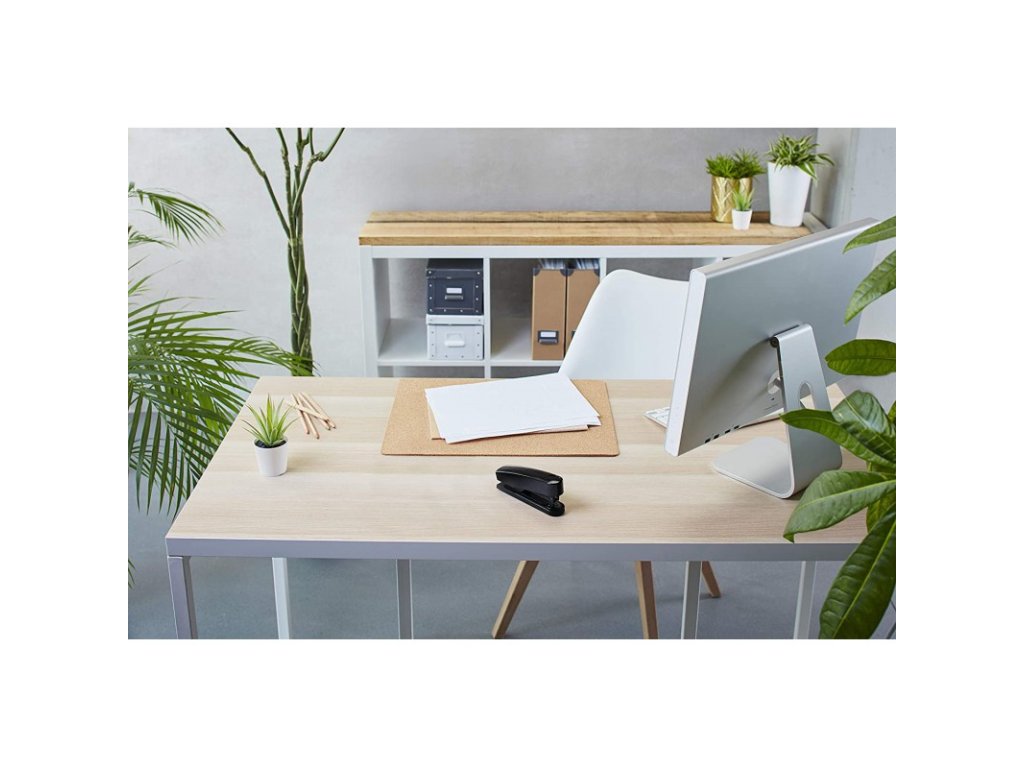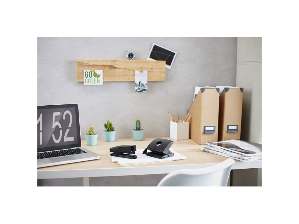 Ekologicky šetrná kancelářská sešívačka pro každodenní použití. Celokovový výrobek s pláštěm z recyklovaného plastu. Max. hloubka vkládání papíru 65 mm. Horní plnění. Kapacita: 100 kusů sponek 24/6, 150 kusů sponek 26/6. Otočná matrice pro pevné nebo volné sešití. Kombinace moderního designu s jednoduchostí použití - pro všestranné přesvědčivé výsledky. Hmotnost: 175 g. Balení vč. 200 sponek 24/6 DIN SUPER. Prodloužená záruka: 10 let.