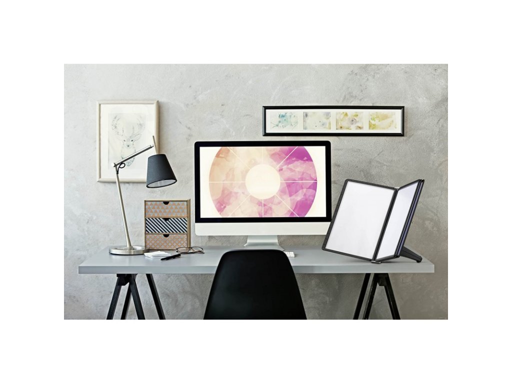 - Stolní stojan s 5 černými tabulemi z polypropylenu.