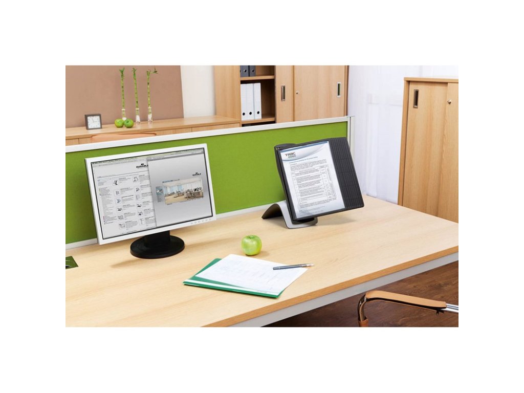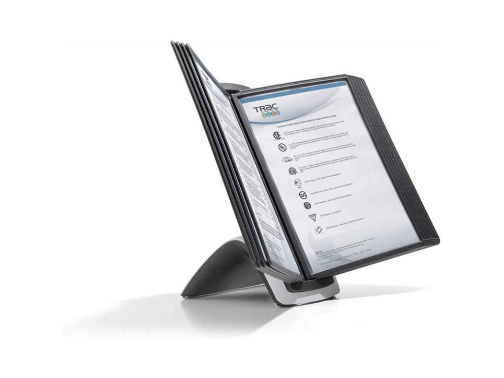 - stylový stolní držák s 10 černými SHERPA® rámečky ve formátu A4