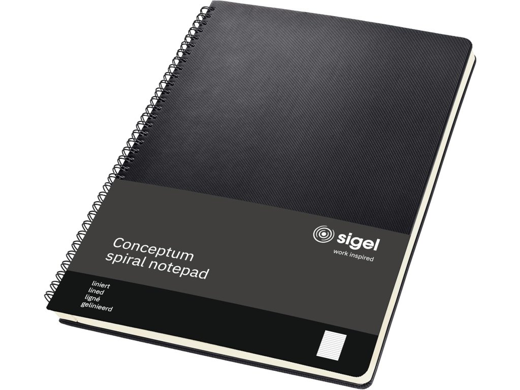 Sigel Conceptum, Spirálový blok, tvrdé desky, černá, A4, linkovaný, 80 listů