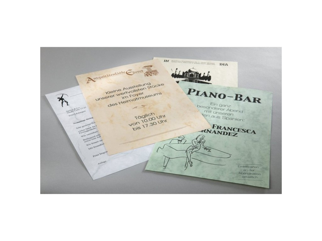 - Kvalitní mramorovaný všestranný papír pro použití jako certifikáty , hlavičkové papíry, pro jídelní lístky, atd