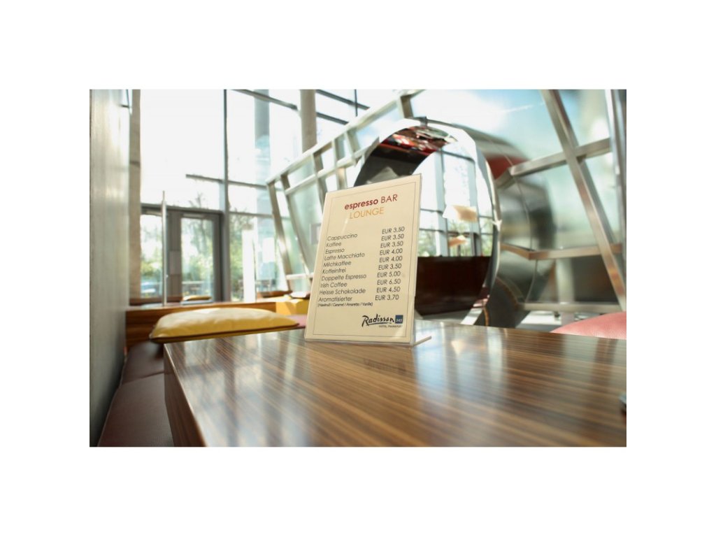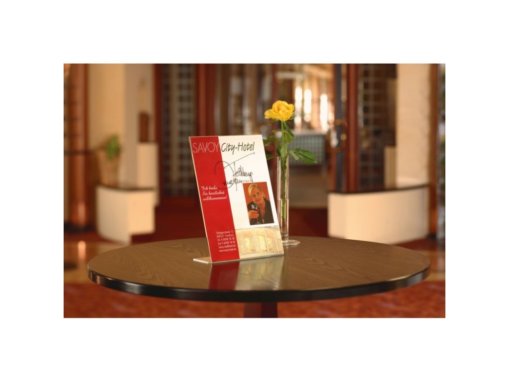 - Šikmý stolní displej pro jednostrannou prezentaci například akcí, tipů nebo nabídek ve formátu DIN A4.