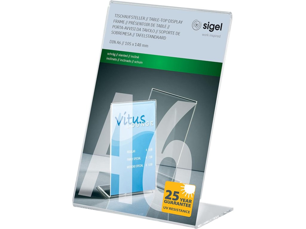 Sigel TA214, Akrylový krystalicky čirý stojánek na letáky typu L - formát A6 na výšku