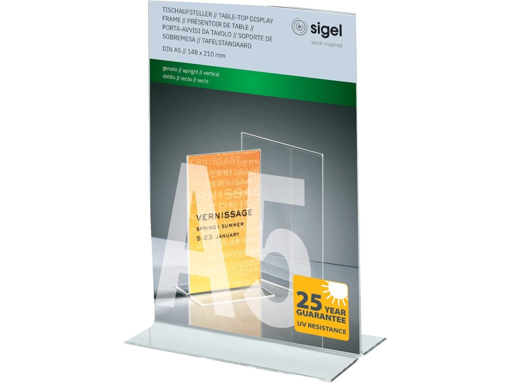 Sigel TA222, Akrylový krystalicky čirý stojánek na letáky typu T - formát A5 na výšku